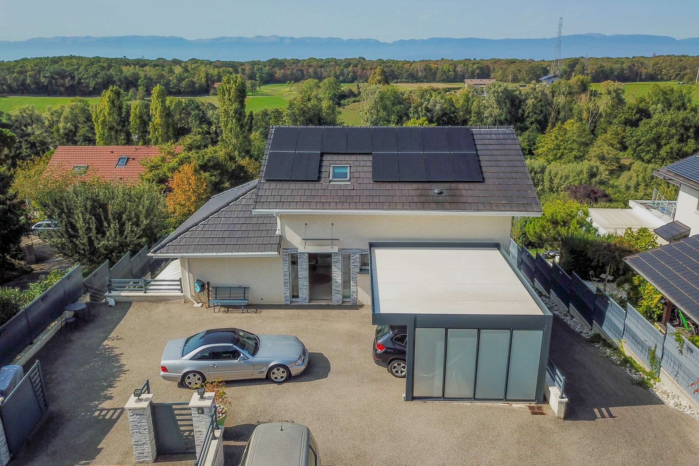 Located in a peaceful residential area nearby the Renfile border of Switzerland, this superb contemporary property of 245 sqm on 3 levels offers an exceptional living environment on a beautiful plot of 1’500 sqm with a swimming pool.