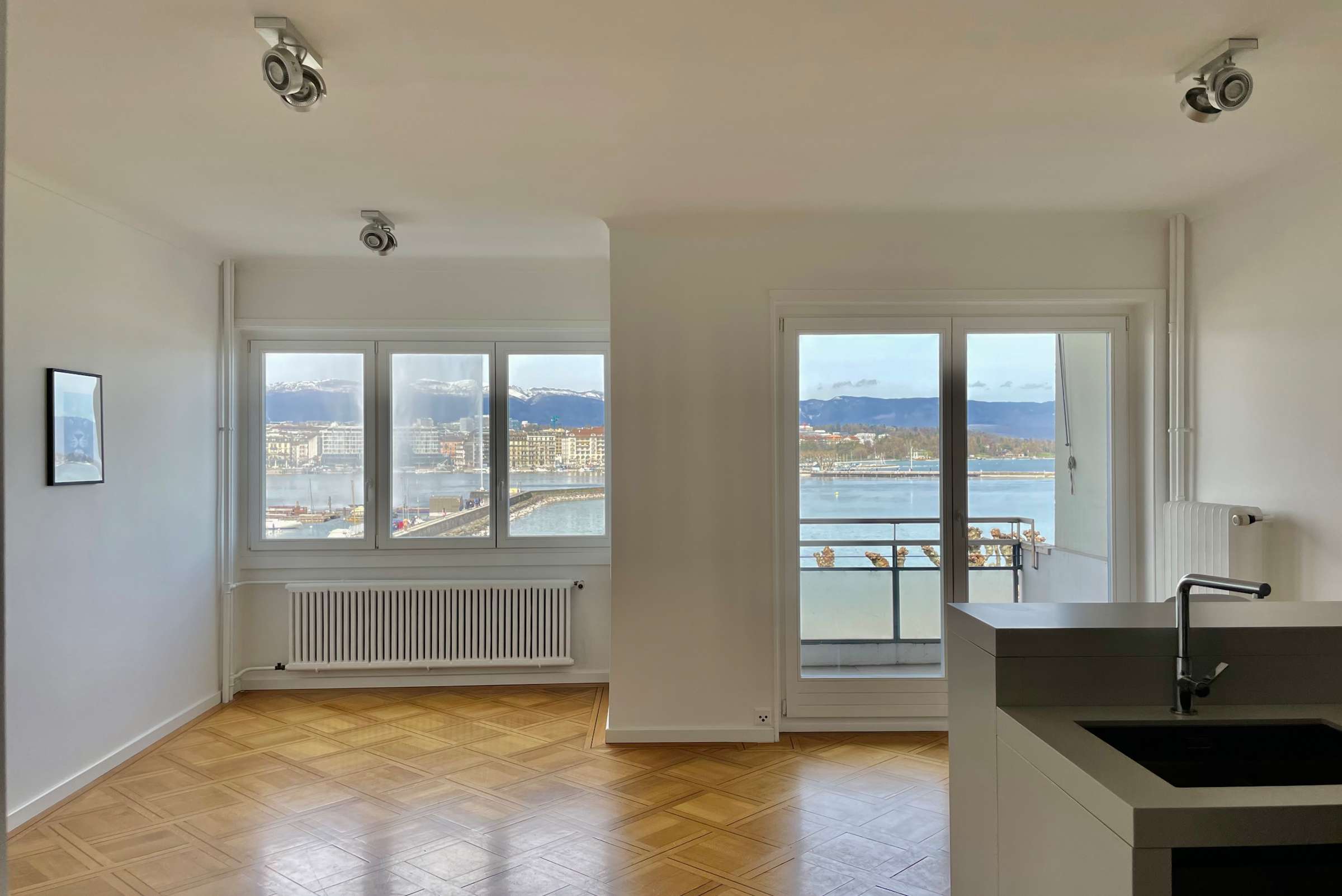 Open Kitchen onto the living-dining room with breathtaking views of the harbor and the water jet, all extended by a pleasant balcony. The sleeping area is made up of two bedrooms, one with a balcony and a bathroom. Available immediately.