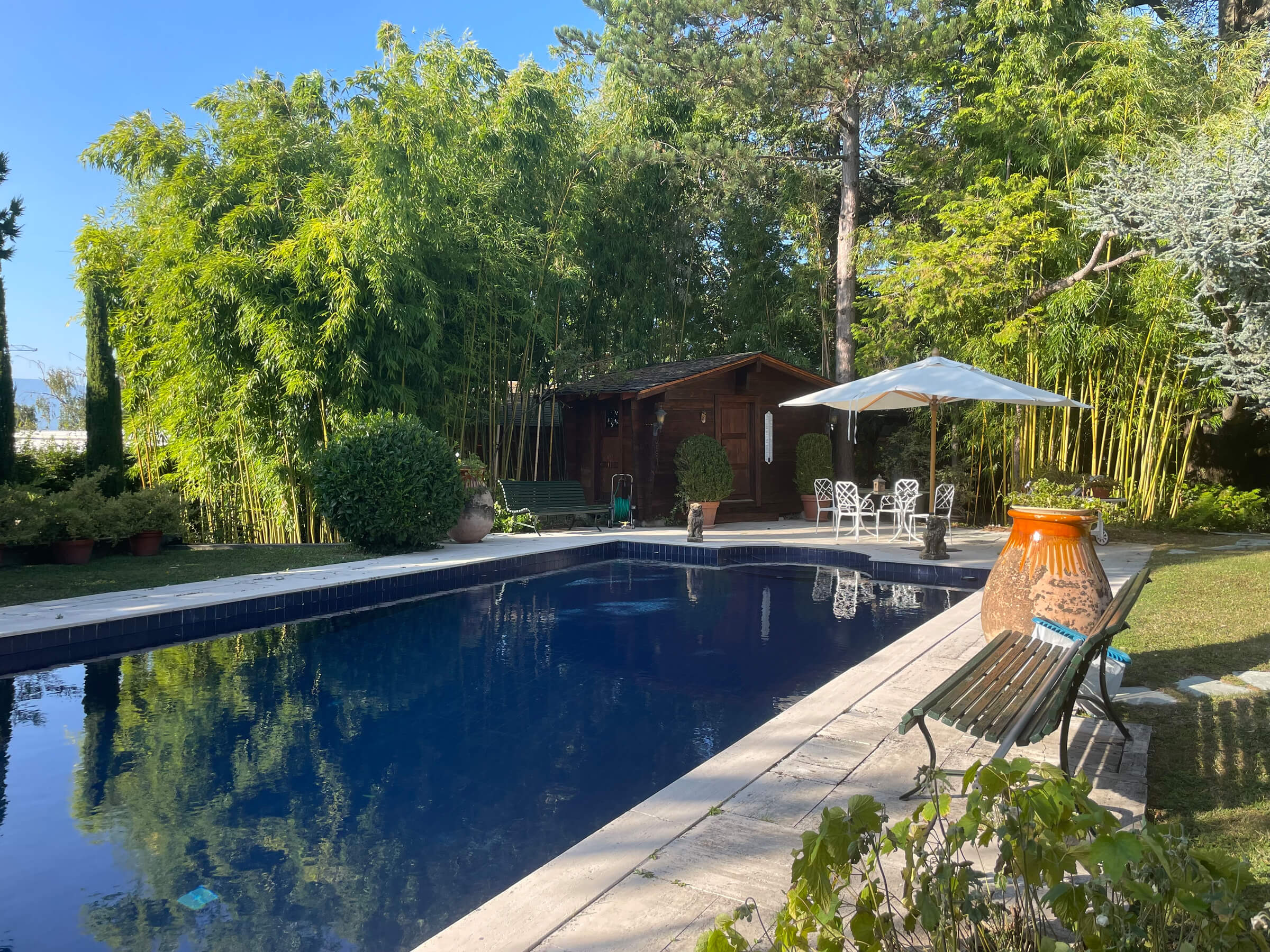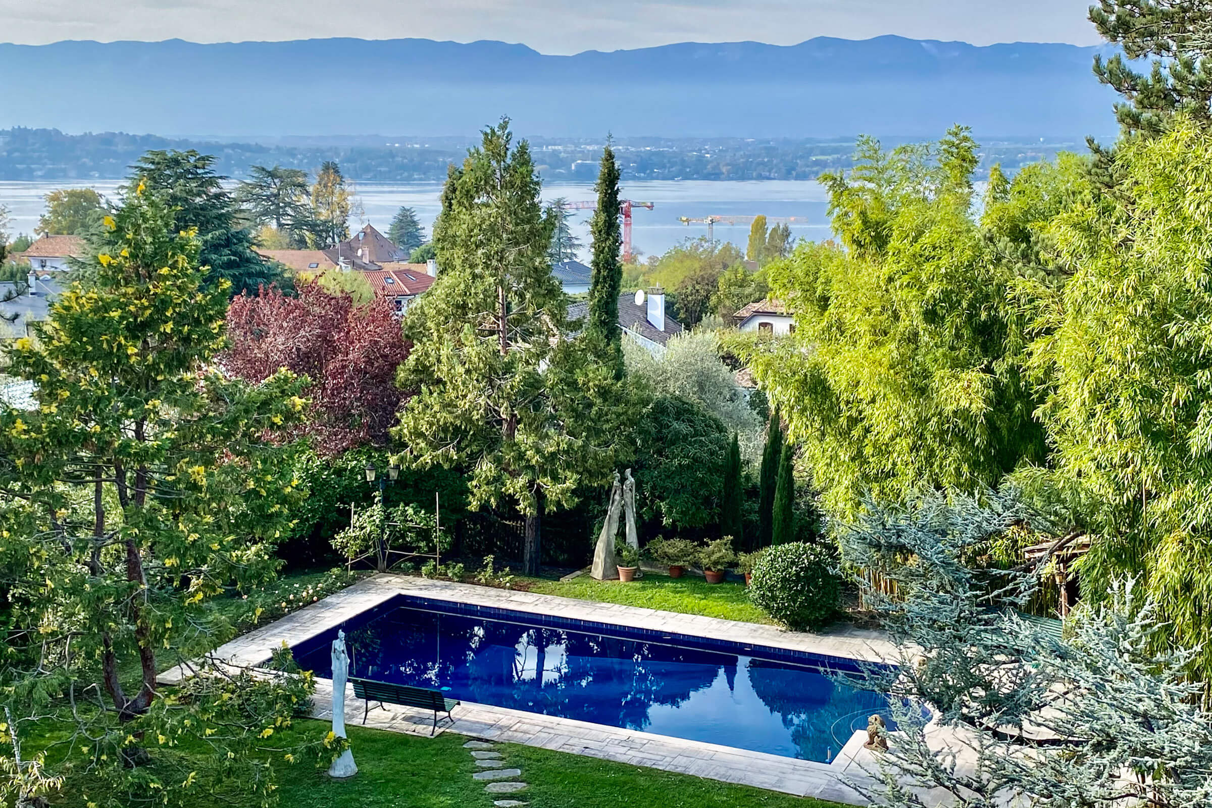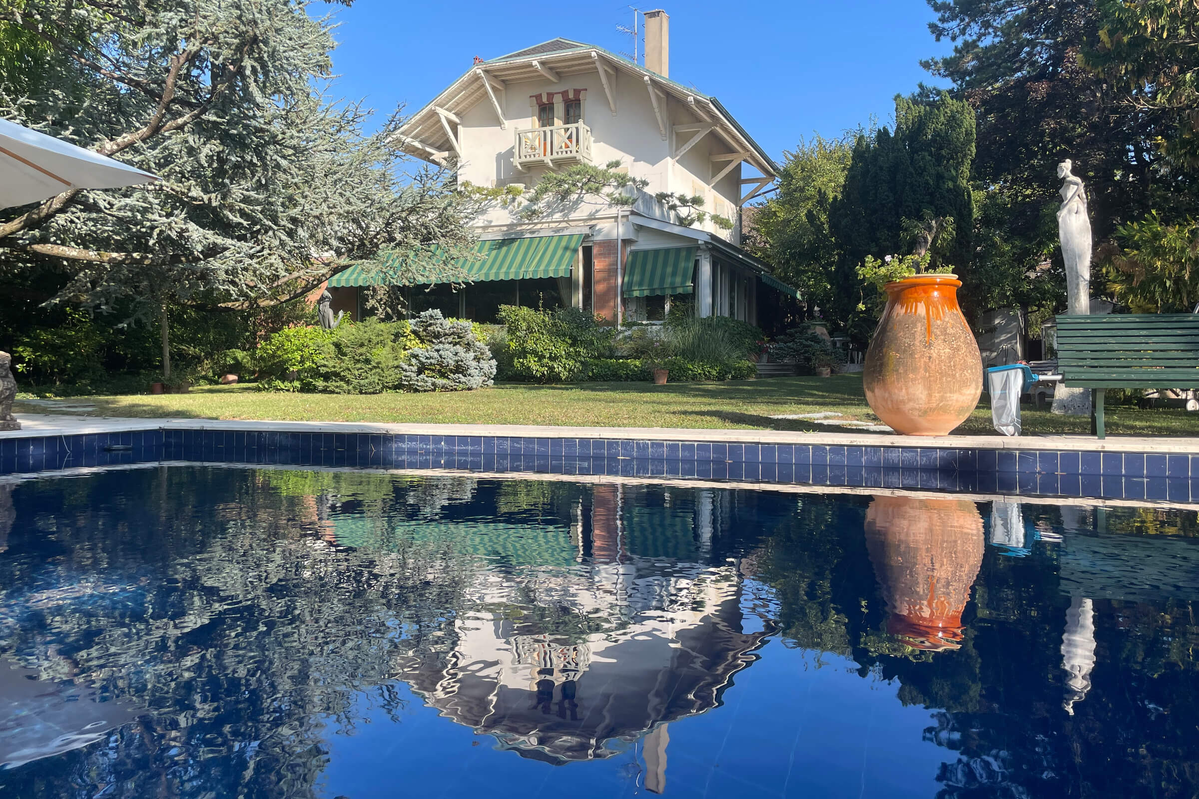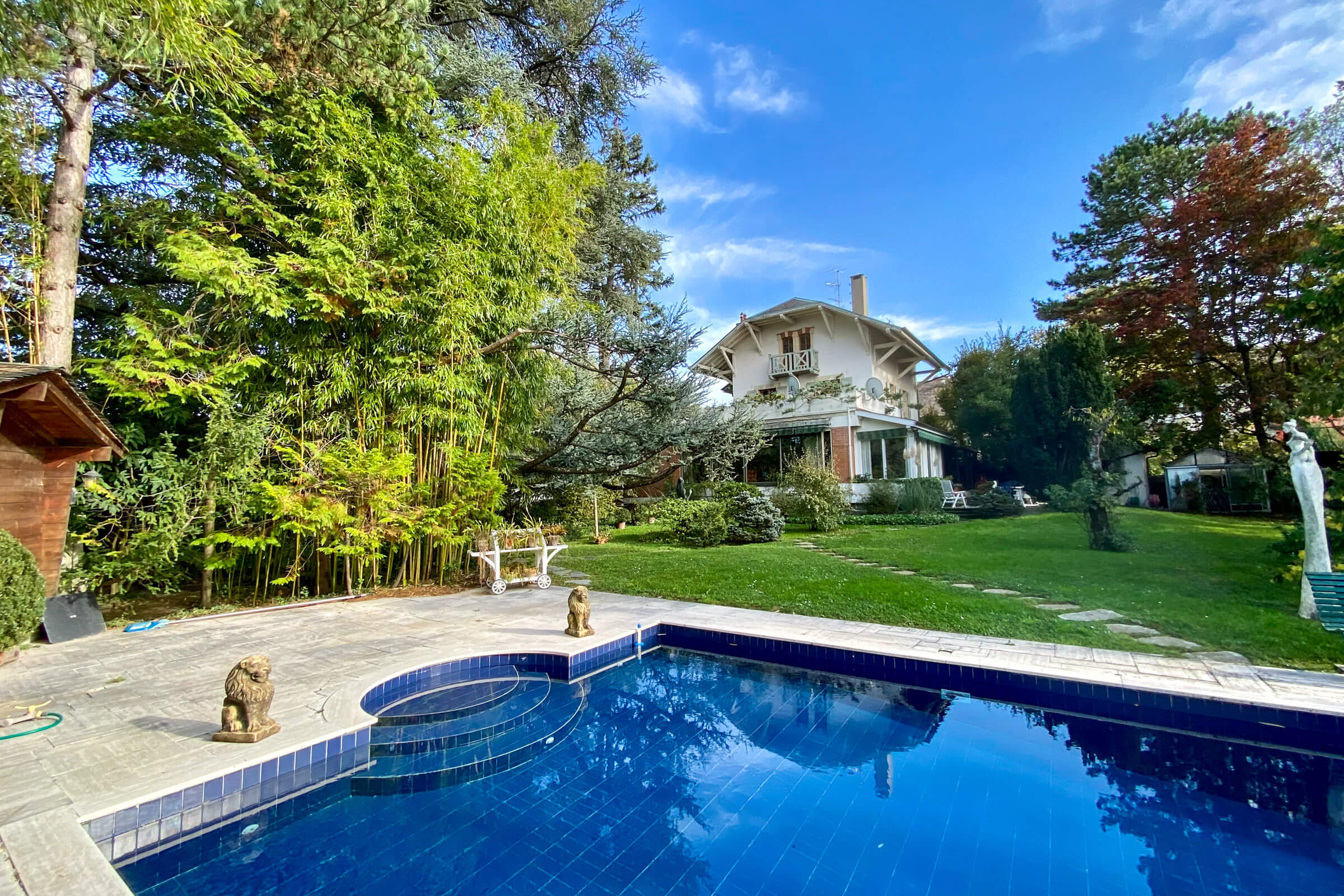 Magnificent period property dating from the 1900s with a surface area of 2100 m2 of superbly planted garden, including a majestic cedar of Lebanon, with a swimming pool and a plot overlooking the lake and the Jura.