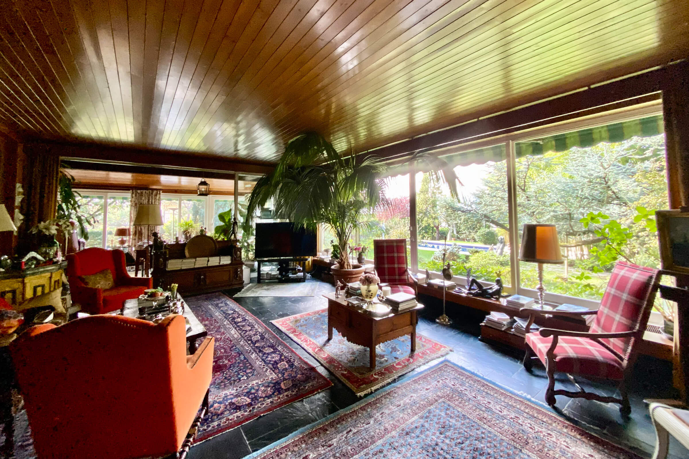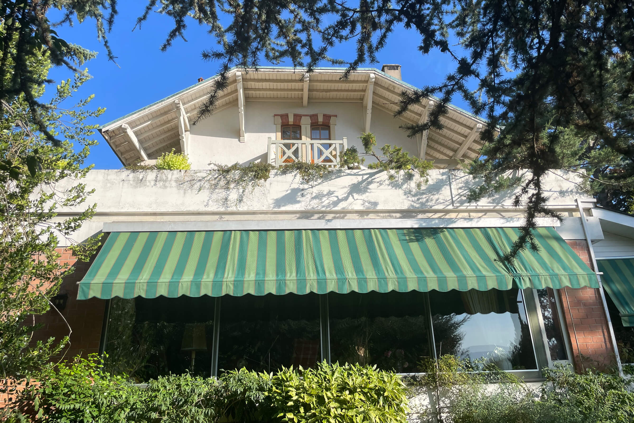 The house is composed of an entrance hall with guest WC, large living room which leads to the small dining room in the veranda, winter garden, large dining room and separate kitchen with independent outside exit. The 1st floor has 2 bedrooms, one with dressing room and bathroom extended by a 100 m² terrace with a superb view of the lake.