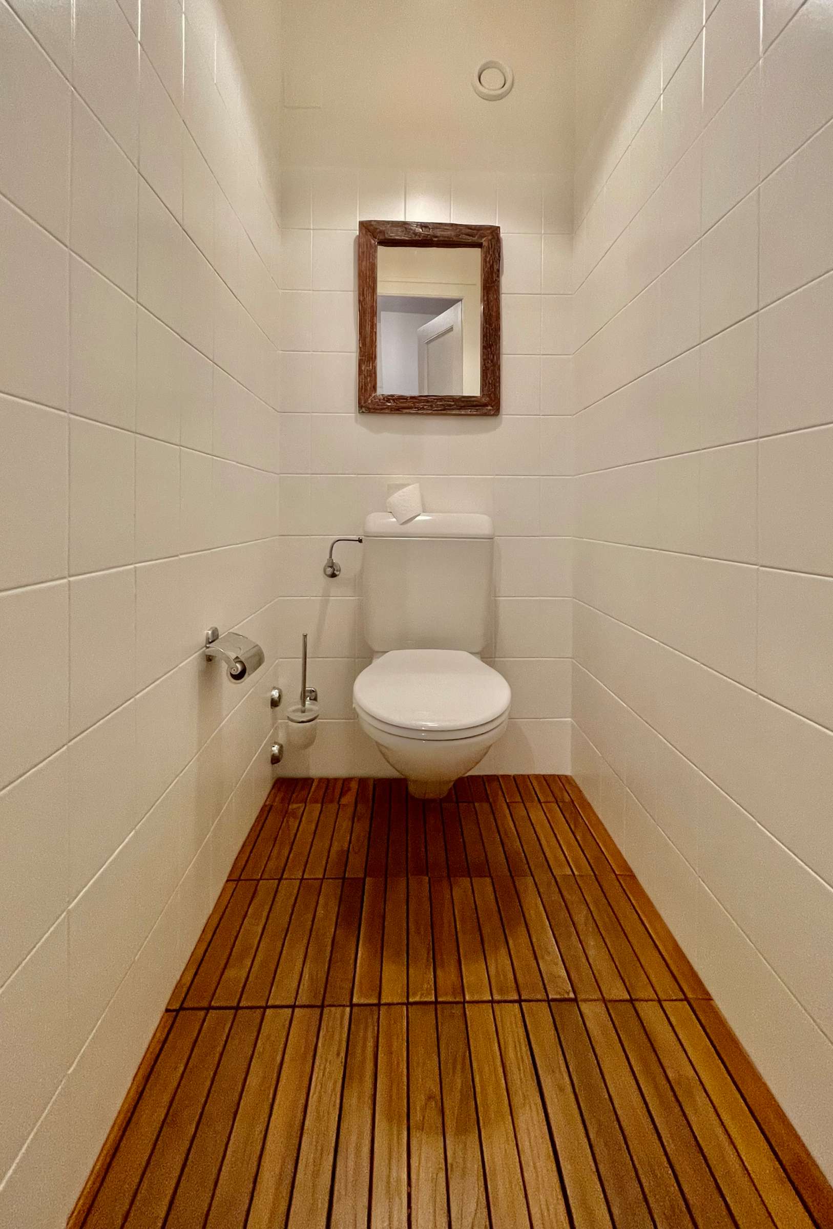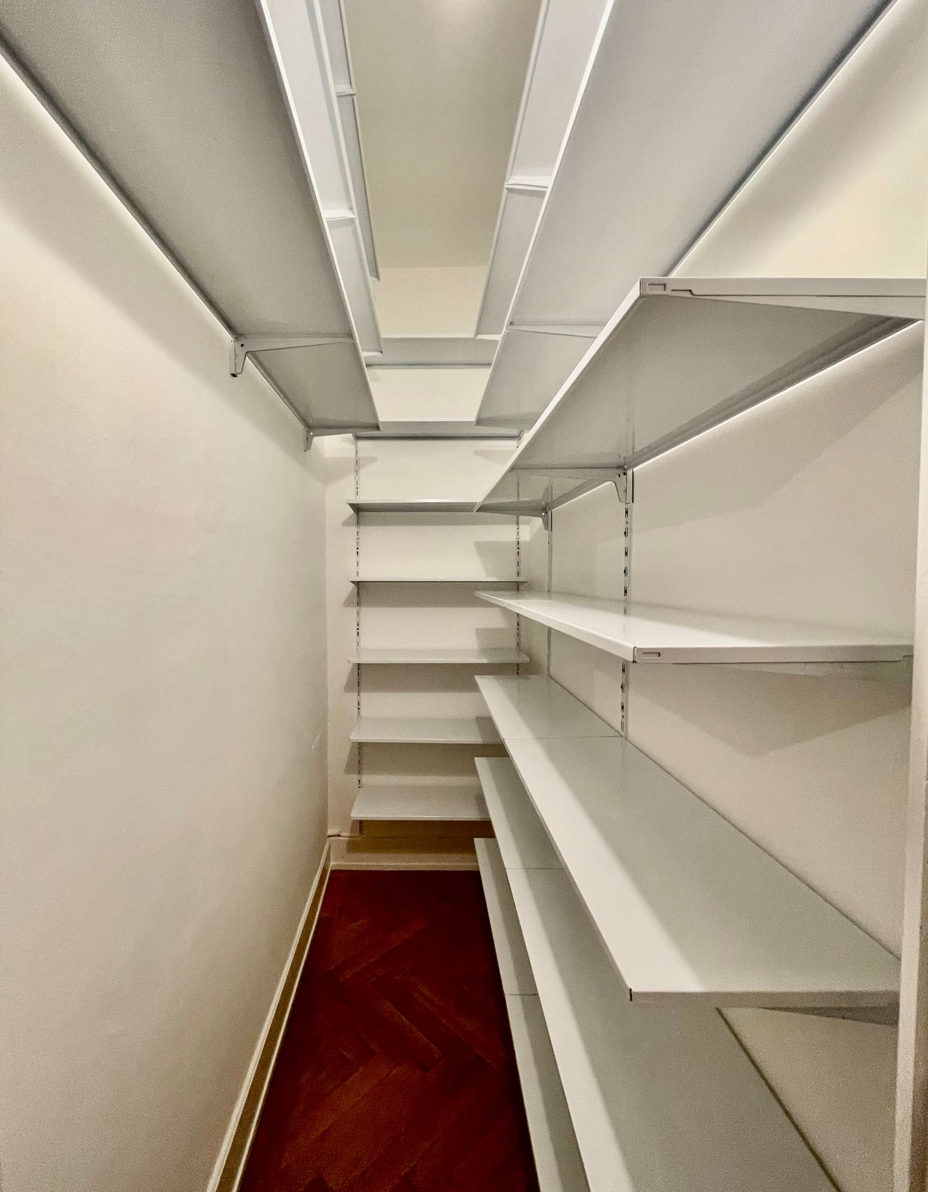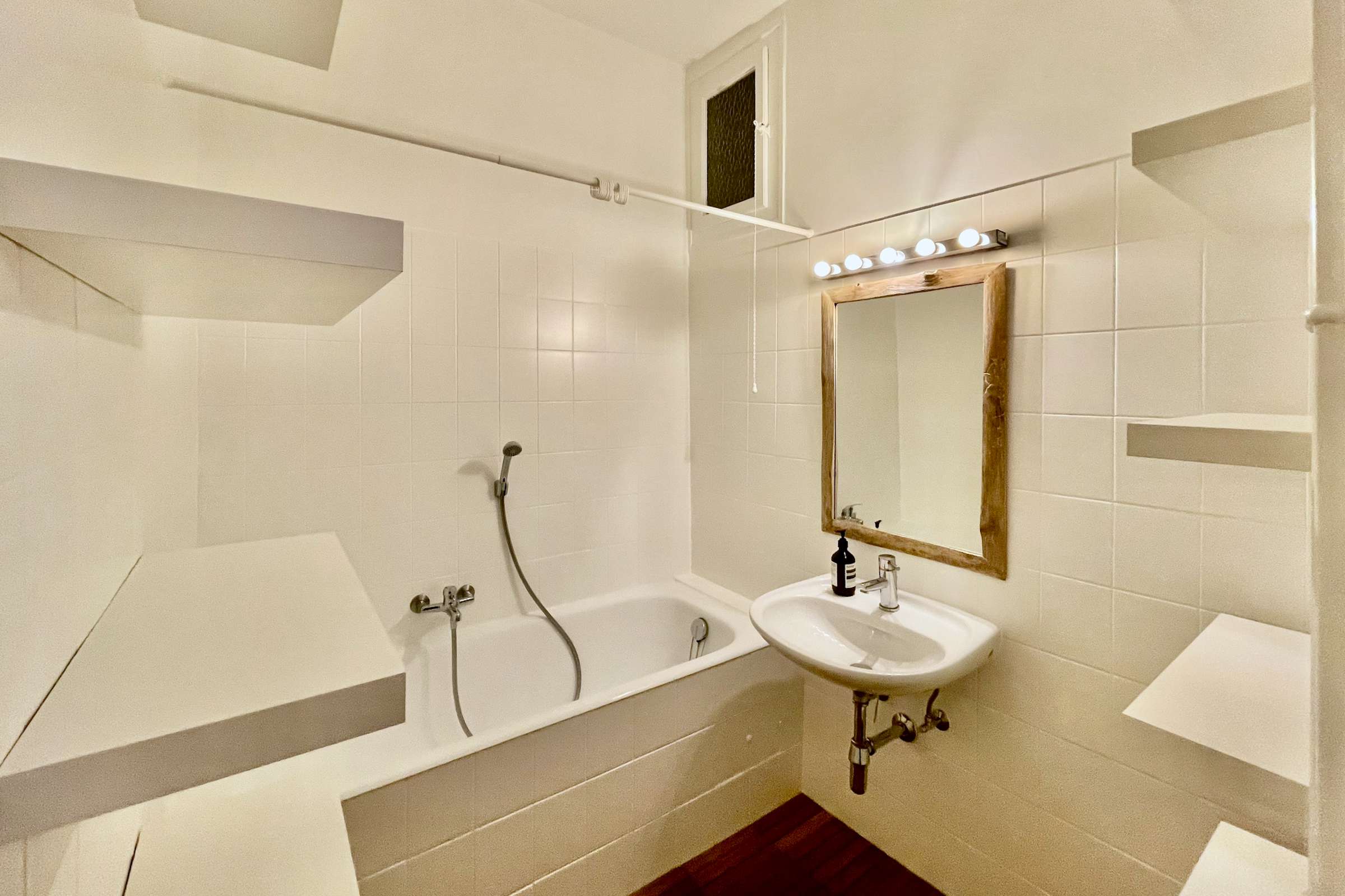The flat is sunny and has been fully repainted. It offers high ceilings, lots of light, old-style wooden floors, an alarm system, light dimmers, double glazing on each window and storage space. Double bed with storage compartment is available in one of the bedroom. The building of high standard and beautiful architecture has an elevator. The cellar is located in the basement.