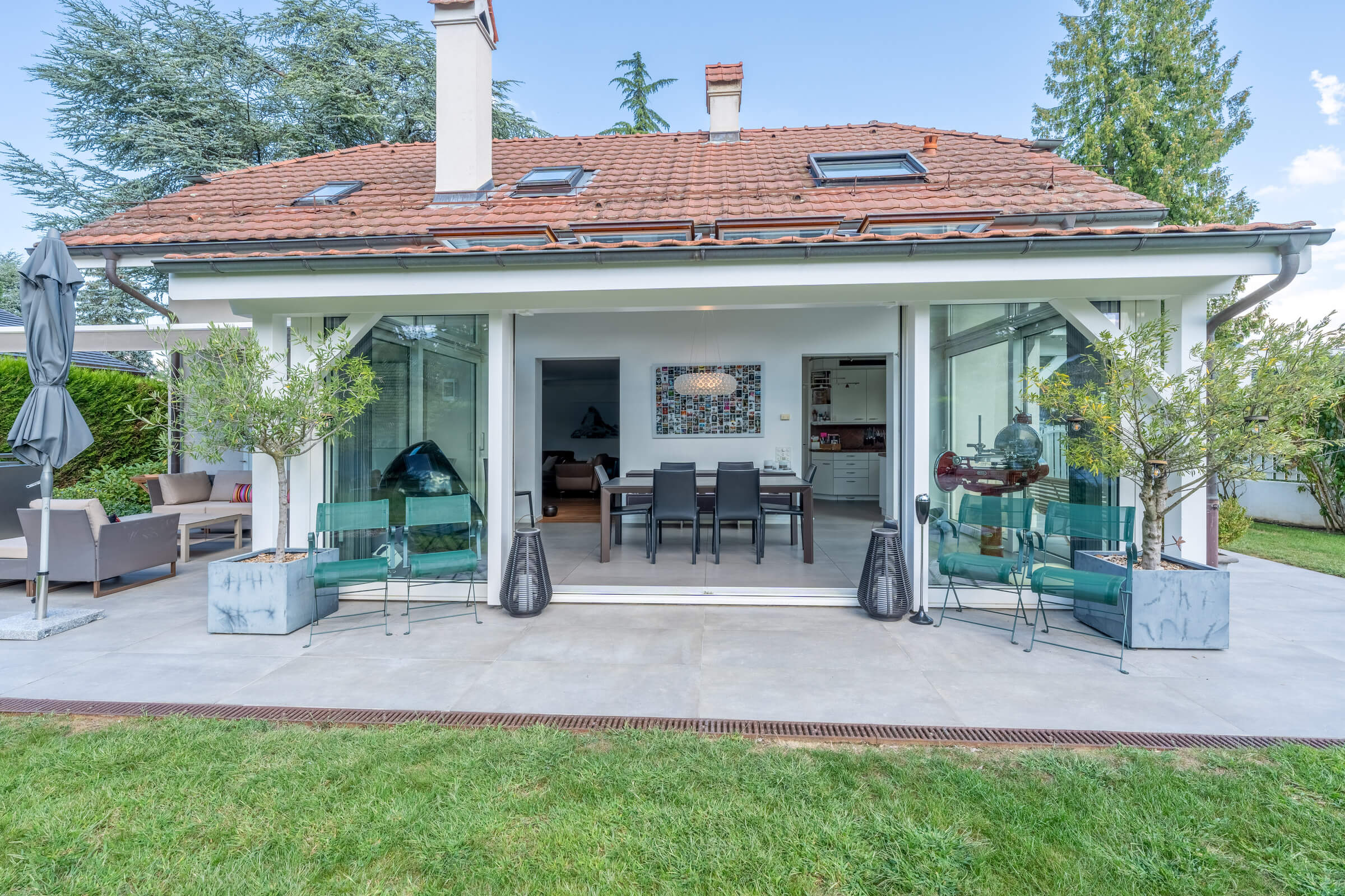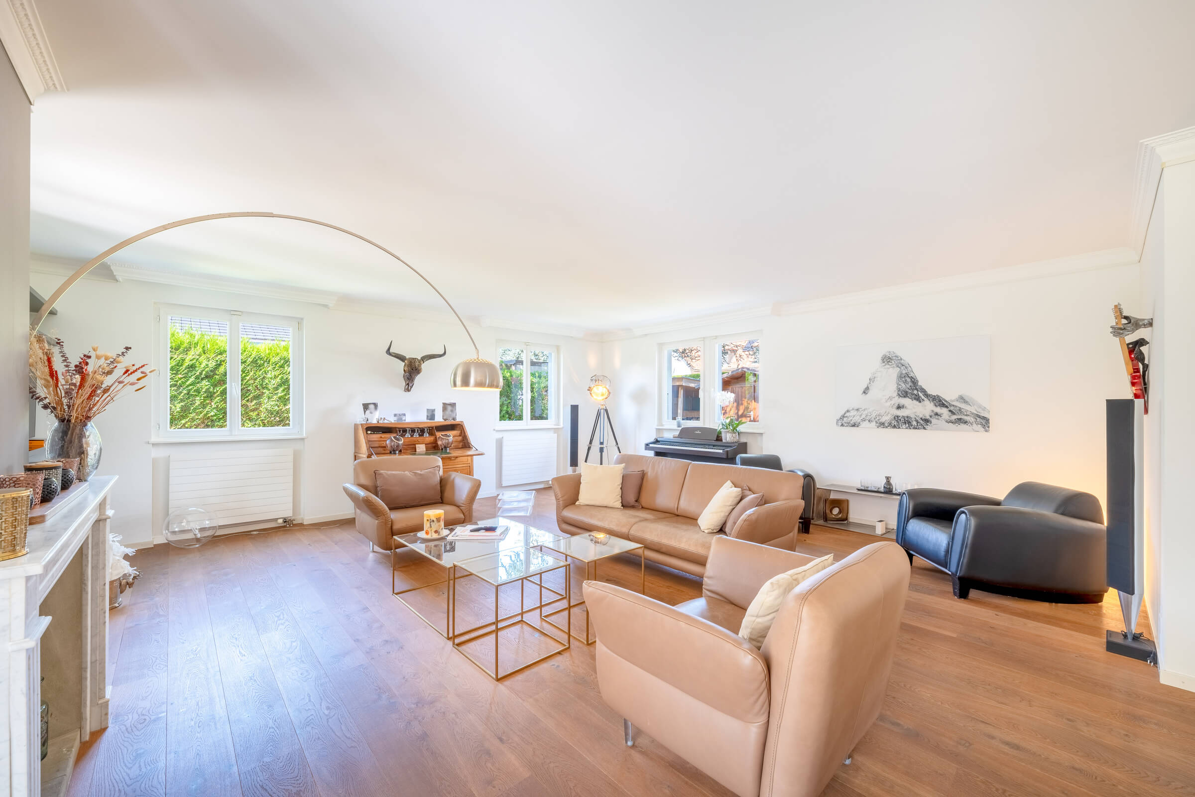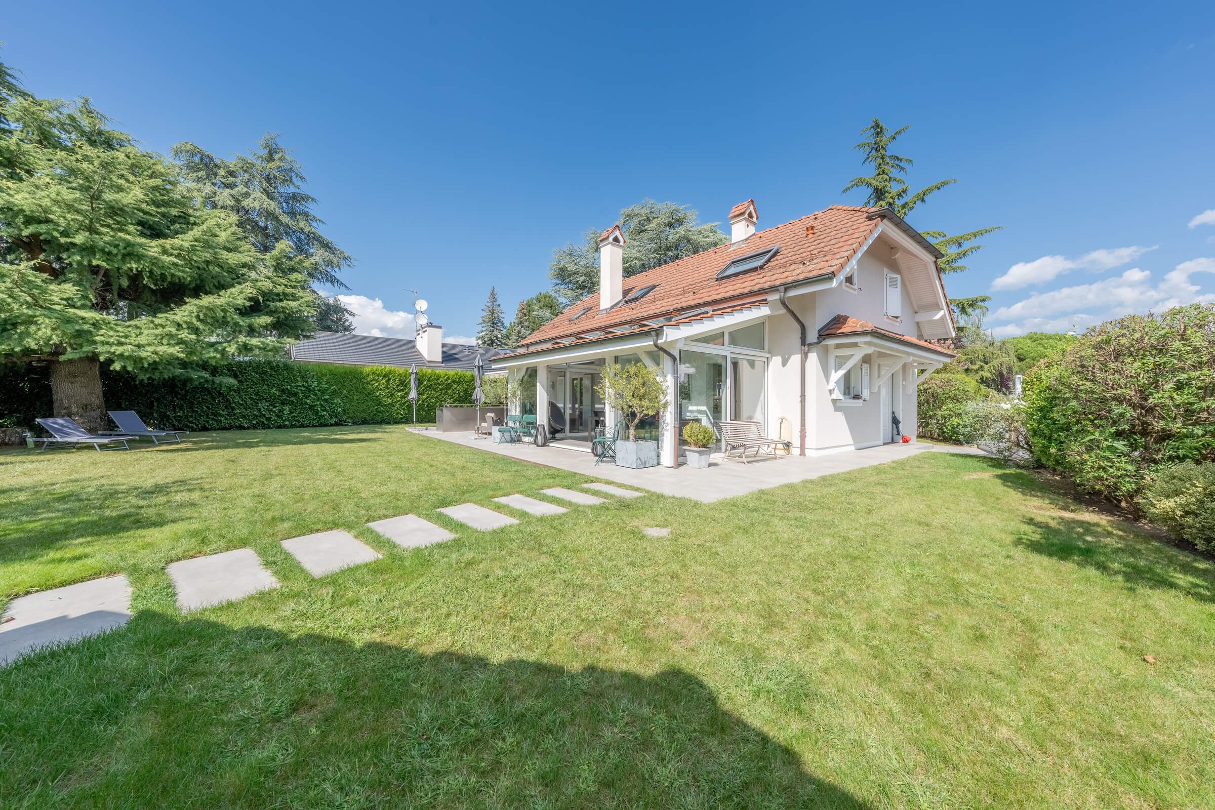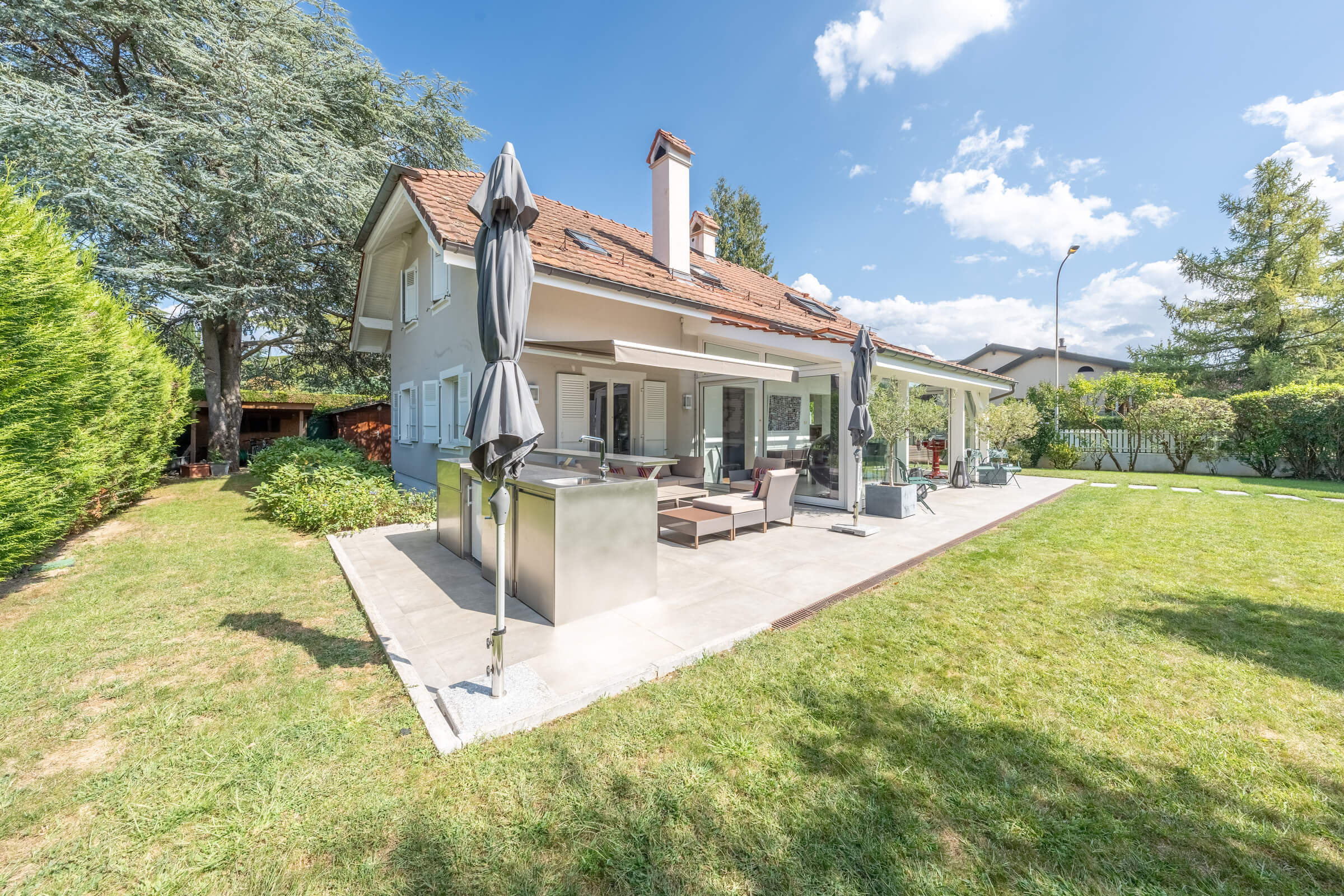 Beautiful traditional Geneva style villa of 280 sqm dating from 2001, completely renovated with taste and elegance, in a quiet dead-end area close to all amenities, located 5 minutes from the Léman express station in Chêne-Bourg.