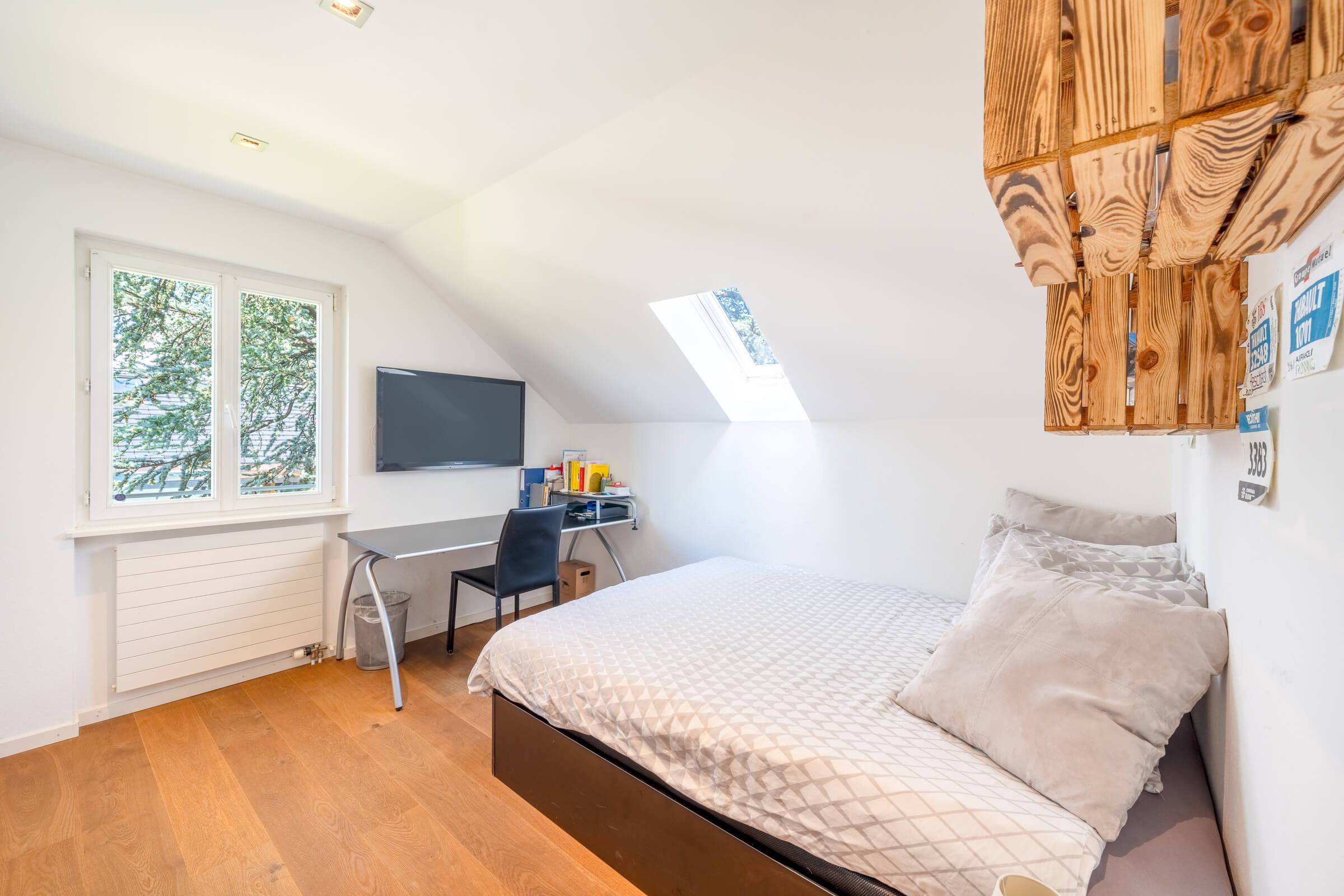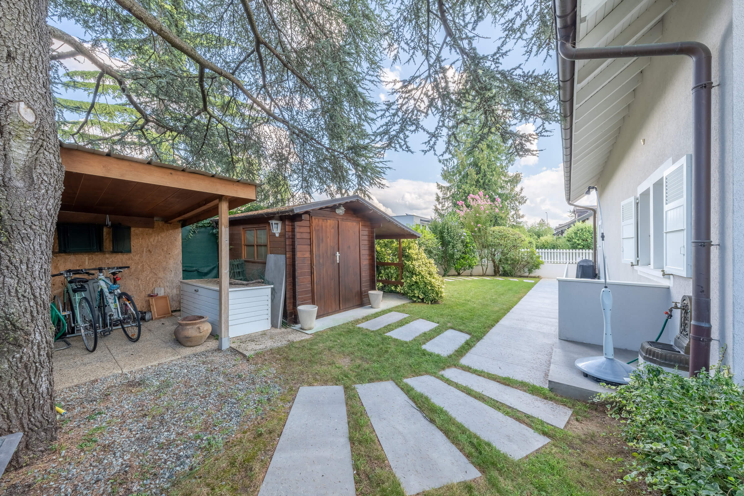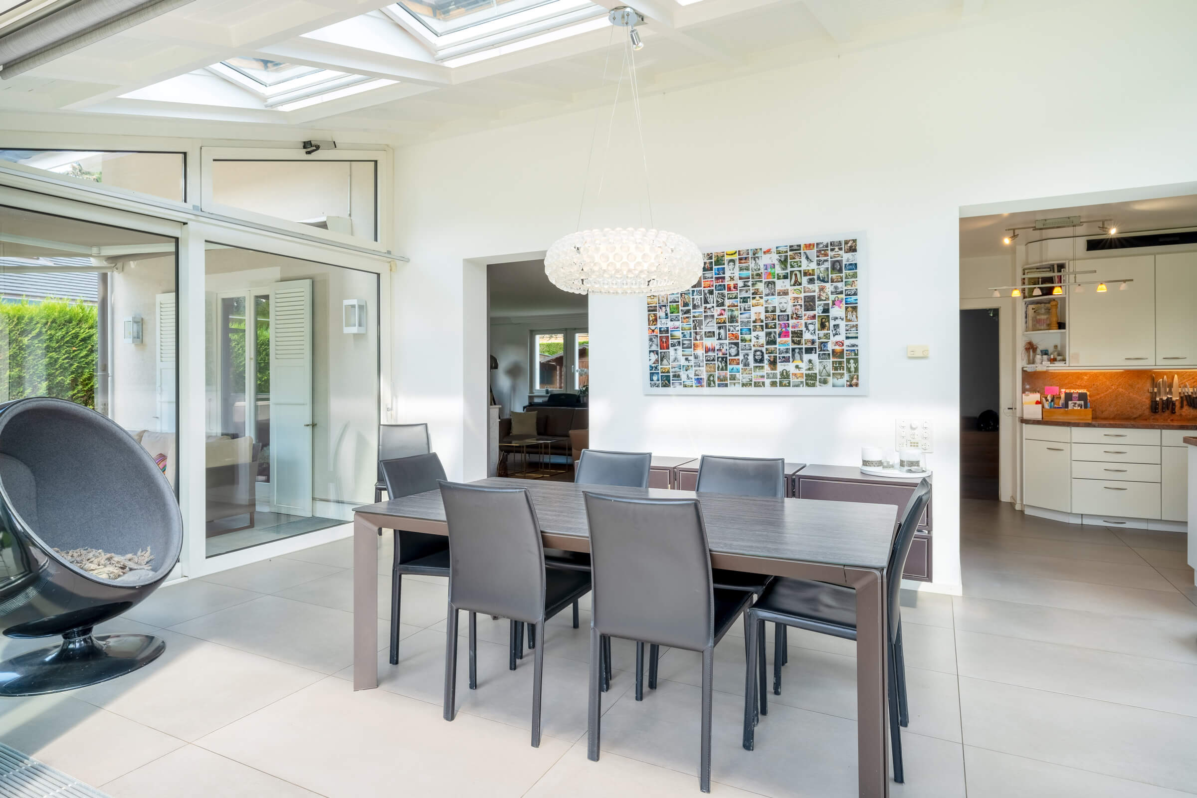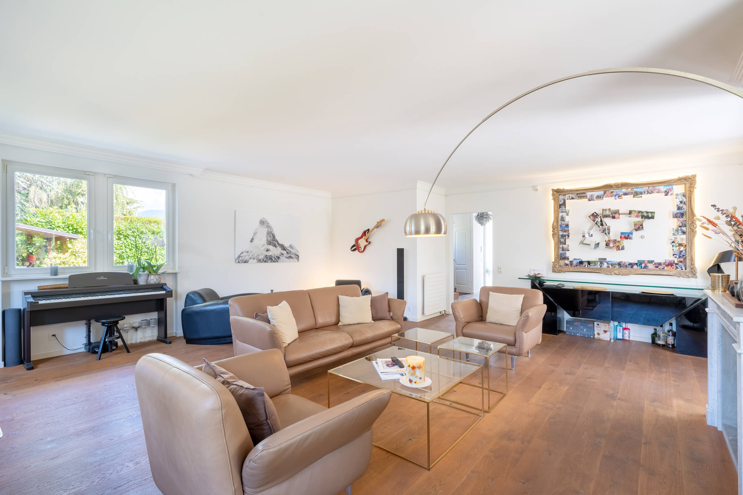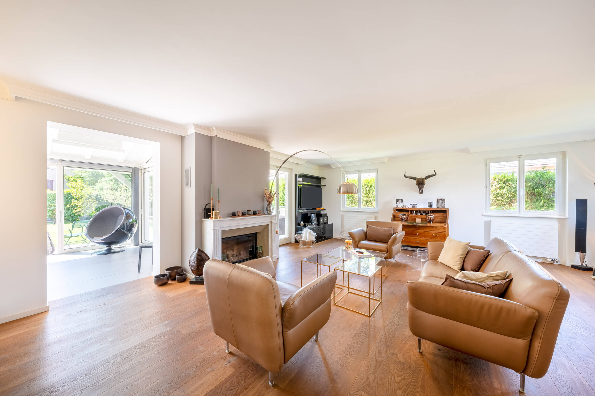 Beautiful traditional Geneva style villa of 280 sqm dating from 2001, completely renovated with taste and elegance, in a quiet dead-end area close to all amenities, located 5 minutes from the Léman express station in Chêne-Bourg.