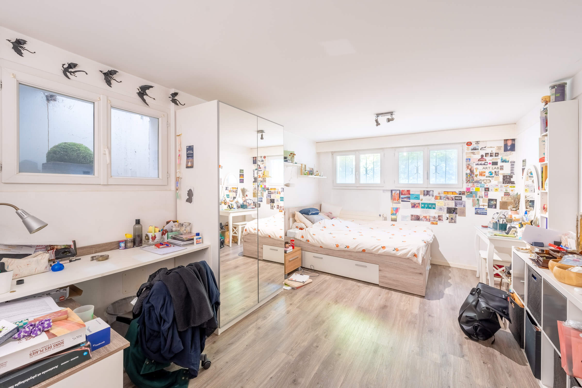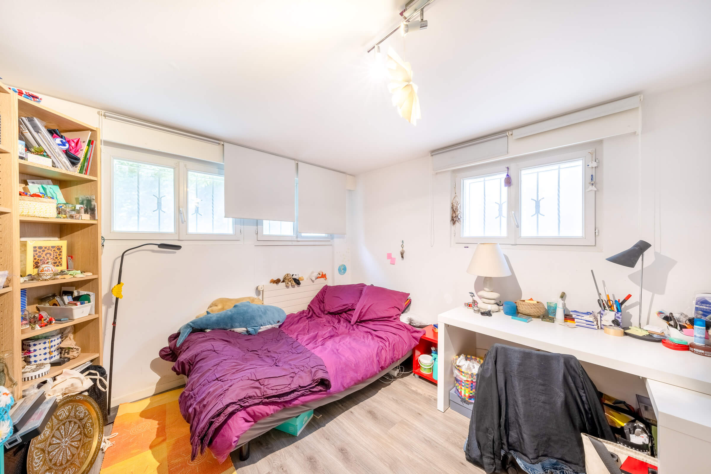 The level garden of 800 sqm has beautiful trees, completely fenced, with a large terrace hosting a summer kitchen. A bicycle shed, a garden shed, and a 2-space garage are also available. The property has a security system and automatic watering.