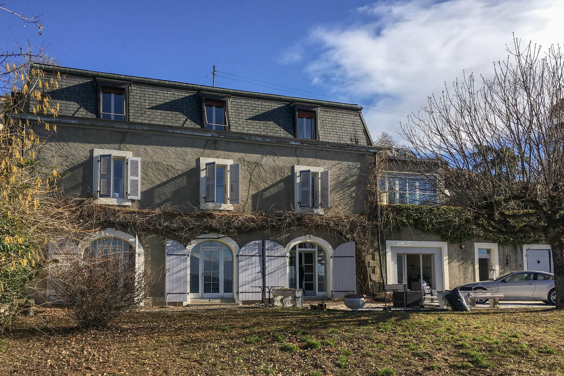 This beautiful property of nearly 400m2 living space is divided into 2 apartments. It is stunningly located on a large plot of land of about 2300m2 facing Lake Geneva with a fantastic view over the Jura and the Mountains.