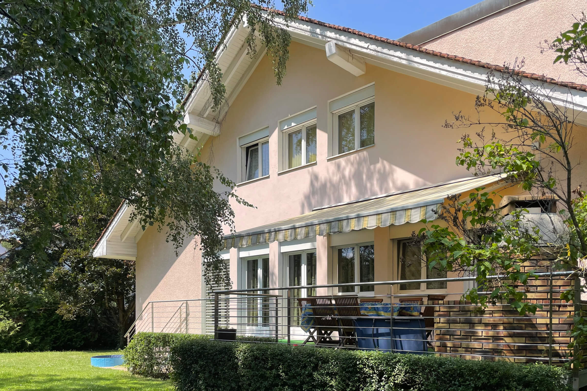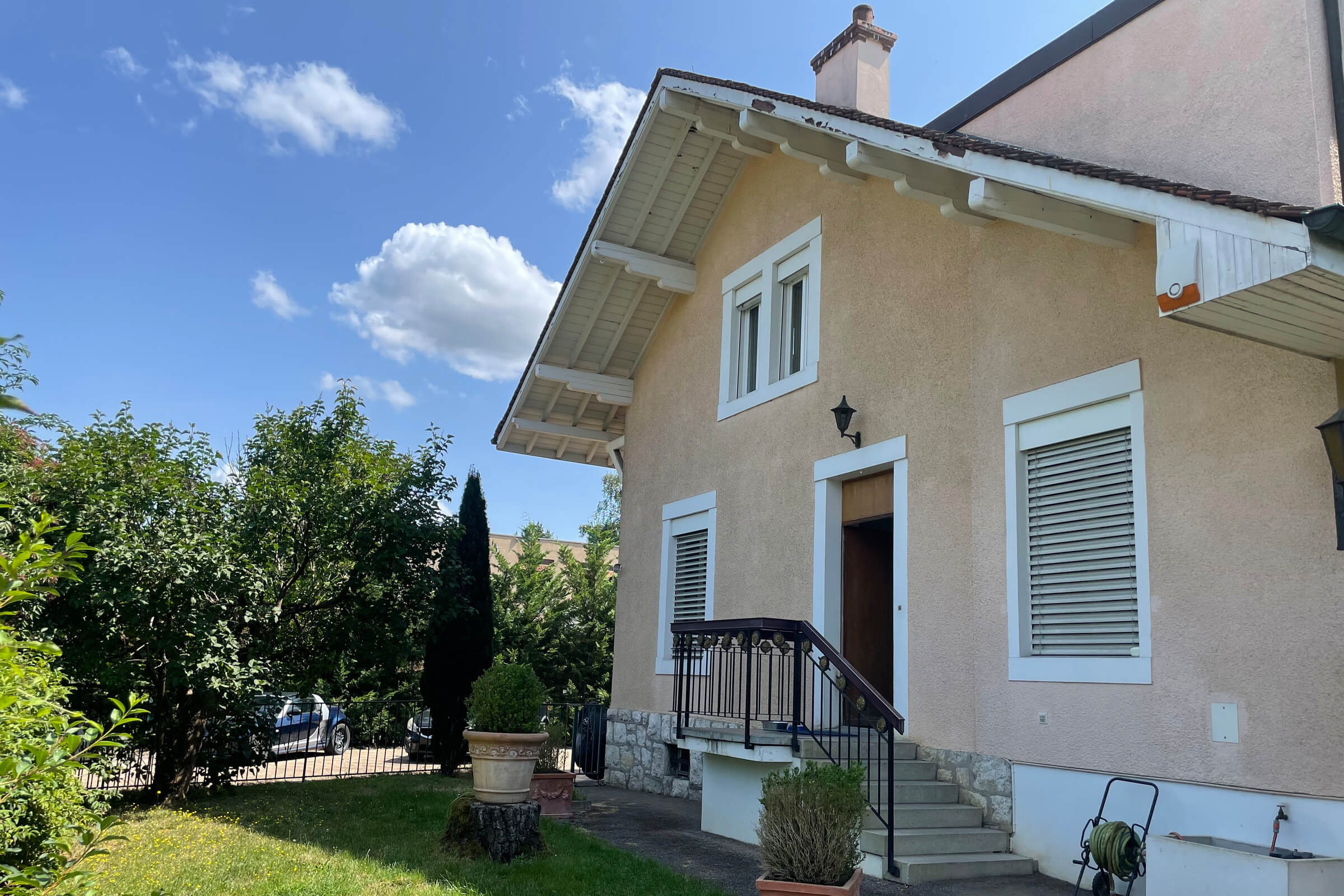 Beautiful villa originally dating from 1916 then enlarged in 1980 and completely renovated in 2001. With a surface area of more than 400m2 in total, located on a pleasant flat and well-wooded plot of almost 1100m2. Located in a region close to all amenities and means of transport for direct access to the city, in the rapidly evolving district of Chêne-Bourg where it is possible to have artisanal and industrial activities.
